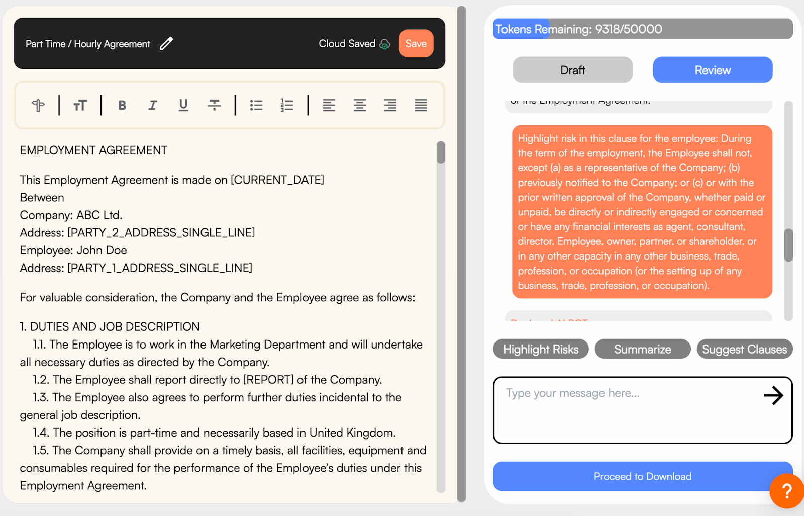 After the AI explains the clauses and flags risks, it can help you: