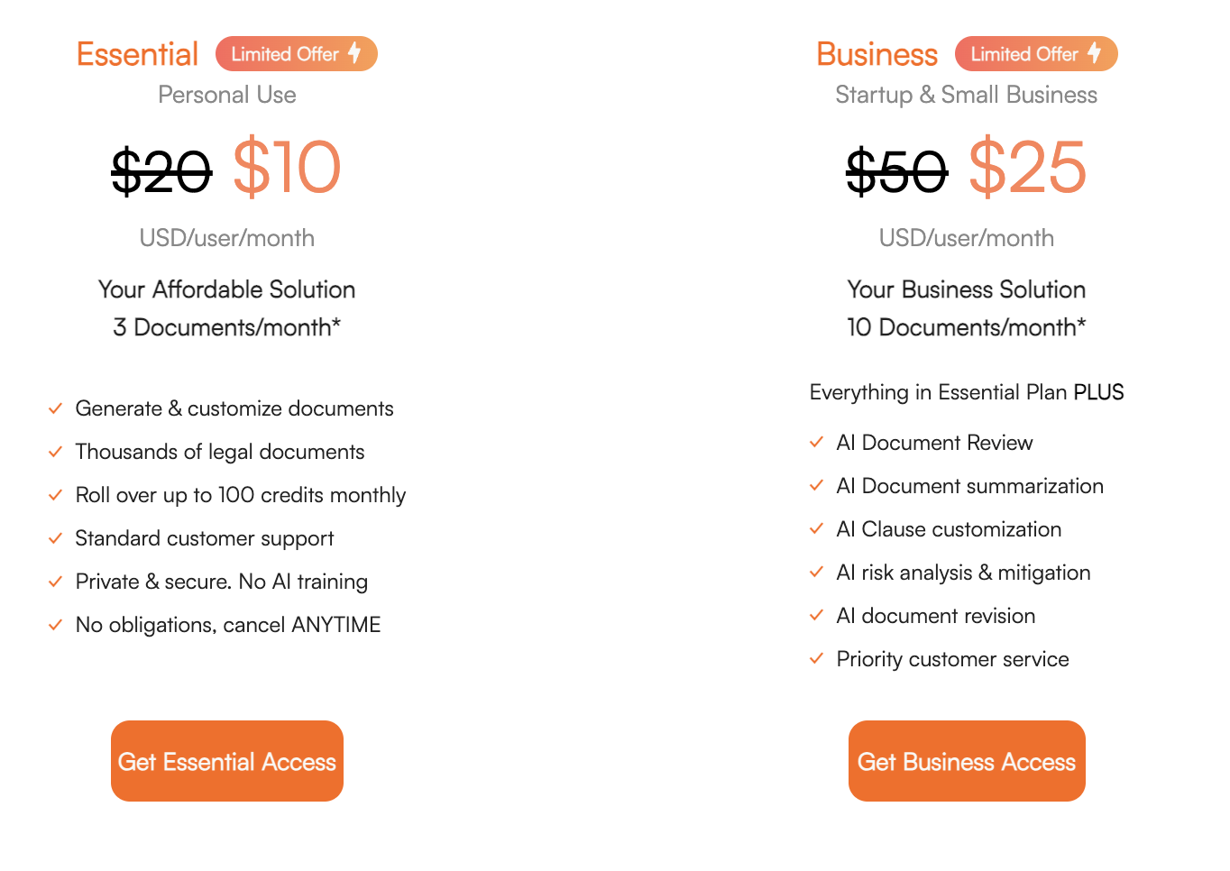 DocLegal.Ai's transparent pricing model offers a cost-effective alternative to traditional legal services, allowing you to maintain control over your legal budget without compromising on quality.